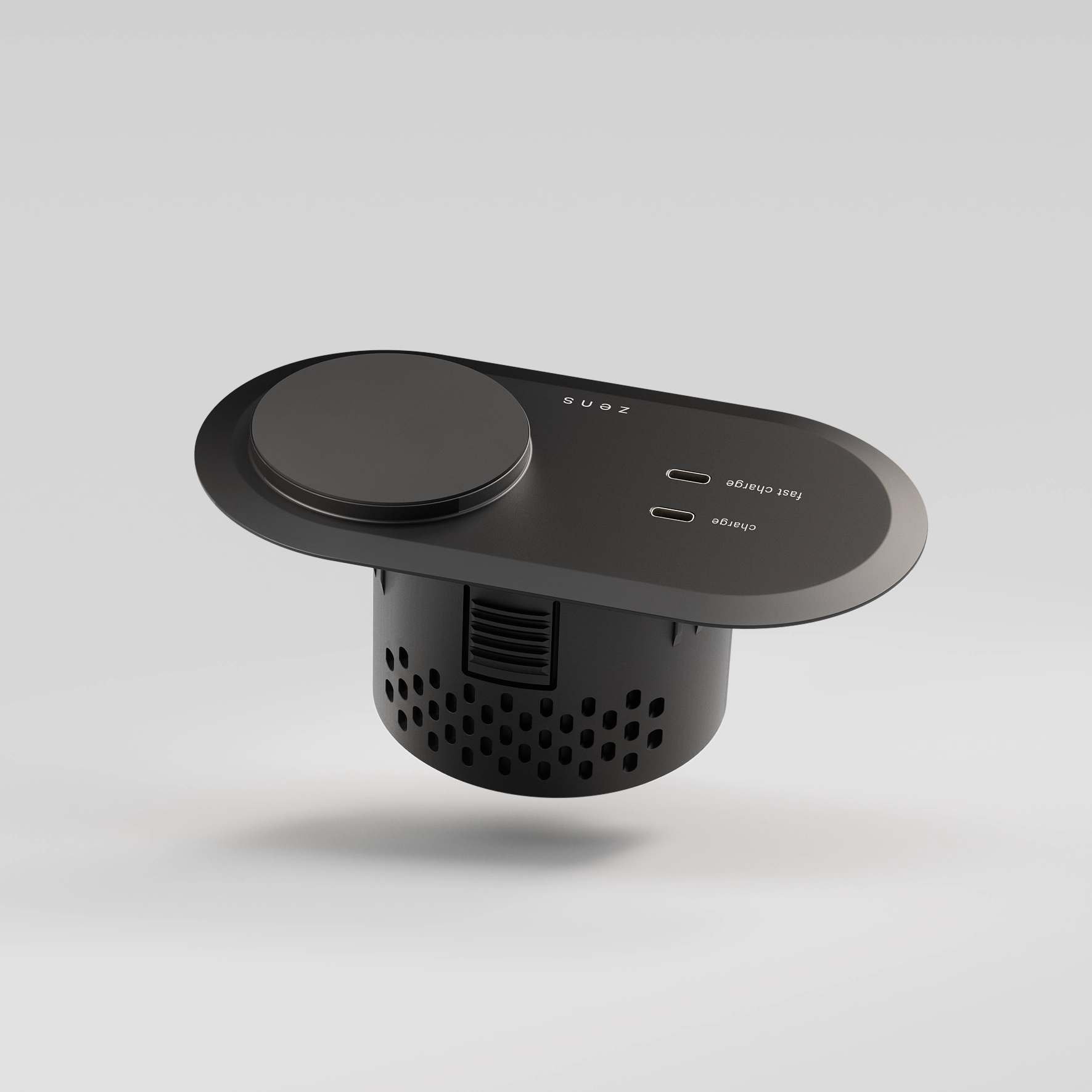 PUK Combi 2 x USB-C, 65W og laderplate 15W. USB-C Port 1: Lading USB-C Powered laptop/MacBook med maks 65W – 45W (når den er delt med port 2) USB-C Port 2: Lading i USB-C Powered telefon eller nettbrett med maks 18W. Komplett med adapter, Ø80mm, SORT.